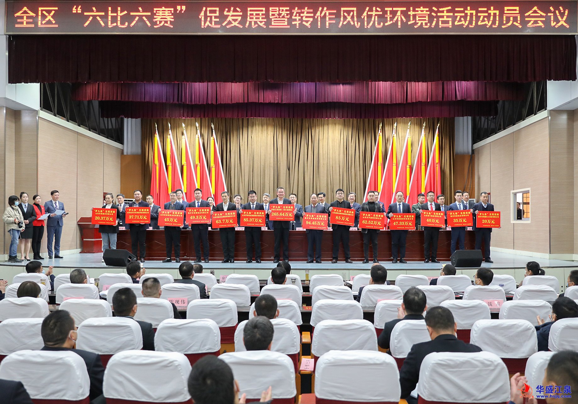 2月10日,羅莊區(qū)“六比六賽”促發(fā)展暨轉(zhuǎn)作風優(yōu)環(huán)境活動動員會議召開,動員全區(qū)上下牢固樹立“項目為王、企業(yè)至上”的理念,一切圍繞企業(yè)轉(zhuǎn),一切盯著項目干,努力跑出項目建設“加速度”,打造營商環(huán)境“金招牌”,展現(xiàn)作風建設“新氣象”,推動全區(qū)經(jīng)濟社會高質(zhì)量發(fā)展。為表揚先進、樹立典型,羅莊區(qū)委、區(qū)政府對2021年度具有特殊貢獻的先進企業(yè)進行了表彰。在此次受表彰的全區(qū)15家“2021年度龍榜企業(yè)”中,華盛江泉集團榮登榜首。沈泉莊黨委書記、華盛江泉集團常務副總經(jīng)理、財務總監(jiān)張毅參加動員會議并上臺領獎。
