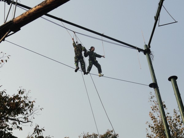 華盛江泉集團始終將人才建設(shè)視為頭等大事,注重提升大學(xué)生的綜合能力和素質(zhì),重視大學(xué)生行為品格、身心素質(zhì)的全面發(fā)展。但在許多大學(xué)生身上,都不同程度地存在著諸如以自我為中心、自私、獨立性差、責(zé)任心差、缺少勇氣、不愿溝通等缺陷,僅依靠傳統(tǒng)教育恐怕效果并不明顯,需要采用新的教育手段-大學(xué)生拓展訓(xùn)練。體驗式培訓(xùn)即拓展訓(xùn)練被廣泛認(rèn)為是一種行之有效的方法。 在此次訓(xùn)練課程中的一些特定的環(huán)境和氣氛中,大學(xué)生要不斷克服自己的心理恐懼、提高情緒,調(diào)節(jié)自我控制能力、保持平和心態(tài)、挑戰(zhàn)自己、戰(zhàn)勝自己,從而塑造冷靜、果斷、堅忍不拔的良好意志品質(zhì)。比如:斷橋這個項目就是旨在培訓(xùn)大學(xué)生心理抗干擾的能力,如果大學(xué)生有一顆平常心,把高空項目的干擾因素排除在腦海之外,就會輕而易舉地完成這個項目。