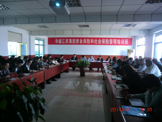 2014年5月7日下午14時,華盛江泉集團(tuán)人力資源部組織開展商業(yè)保險與社會保險管理培訓(xùn)班,參加培訓(xùn)的人員有華盛江泉集團(tuán)人力資源部部長李新勝、集團(tuán)工會主席付冬明、人社中心主任楊琳琳、法務(wù)部法律專責(zé)劉學(xué)權(quán)、集團(tuán)人力資源部社保專責(zé)宋紅、商業(yè)保險專責(zé)朱永宇、建筑公司安全科陳慶鋒以及各單位社保、商業(yè)保險負(fù)責(zé)人與經(jīng)辦人。