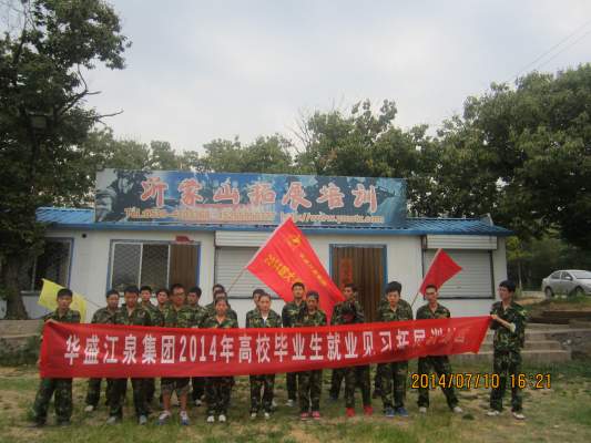 2014年7月6日-10日,華盛江泉集團2014屆大學生訓練營成功舉行。本次報到大學生共21人,為磨煉大學生意志、激發(fā)大學生工作熱情、培養(yǎng)其團隊合作精神、促進大學生的快速成長,集團人力資源部制定了以軍訓、入職培訓、拓展訓練為主要內(nèi)容的培養(yǎng)計劃。